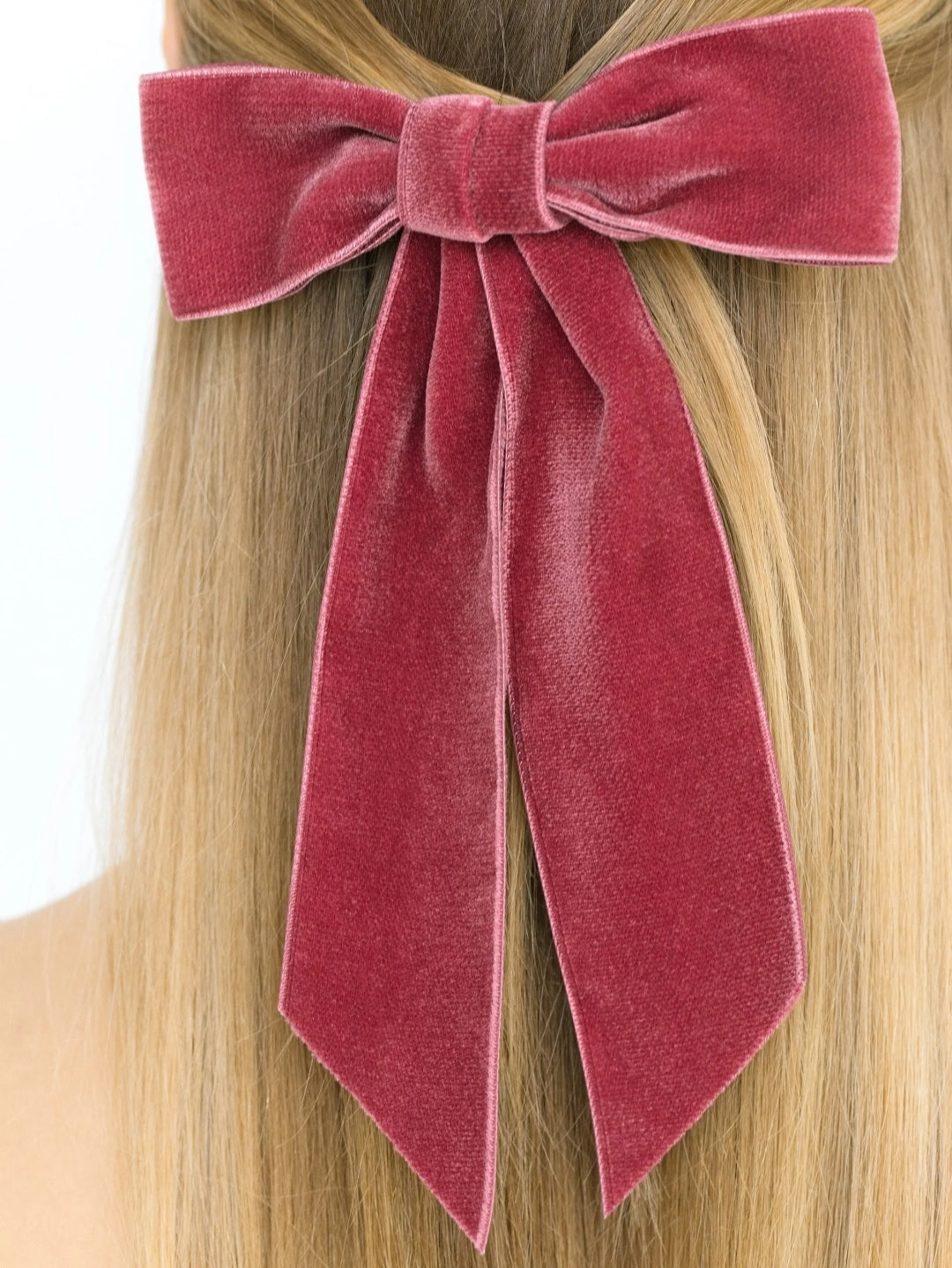 The Wide Velvet Bow is the larger sister of our classic Velvet Bow Barrette. Handmade in our Mumbai studio, it features velvet ribbon and a French barrette closure, making it easy to wear a multitude of ways, in any type of hair. This bow is a timeless addition to your hair collection.